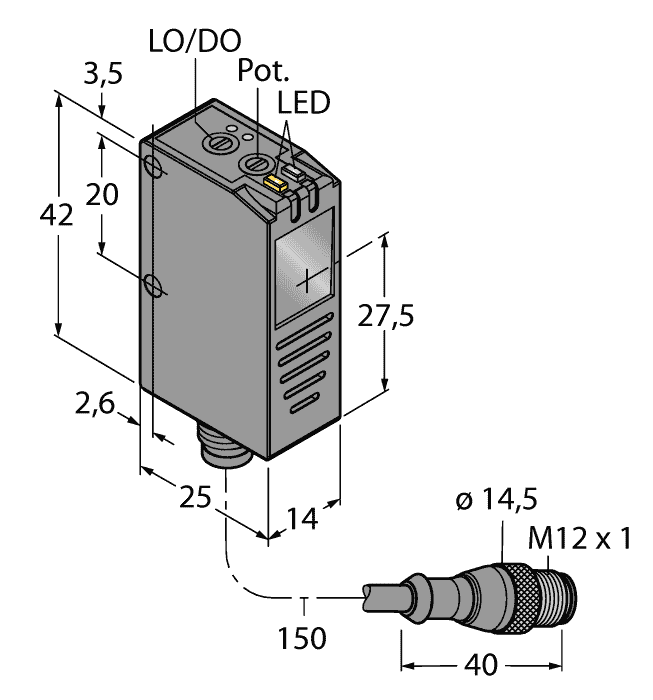 | Kết nối điện | Cable with connector, M12 × 1 |